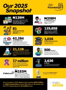 The milestone reinforces the MTN Nigeria Foundation’s enduring commitment to delivering sustainable and inclusive impact, while remaining a catalyst for positive change across Nigeria.